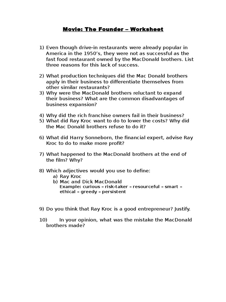 The Founder [Full Movie]▹: The Founder Movie Questions And Answers Pdf Teachertravis Educational Movie Guides Teaching Resources Tes Teachertravis Educational Movie Guides Teaching Resources Tes